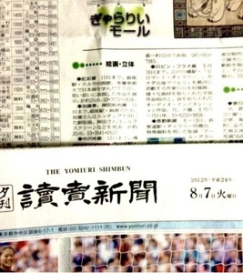 The article on the exhibition is published in Yomiuri Shimbun evening edition (Newspaper) dated Aug. 7, 2012.