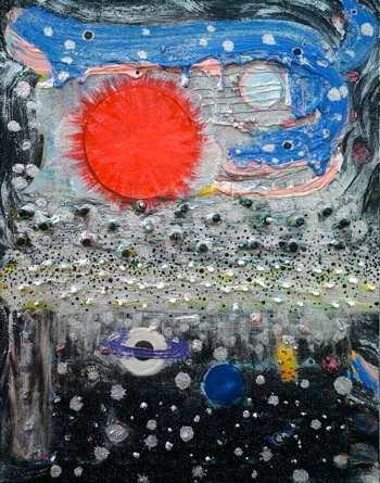 The subject of these most recent paintings which were made especially for this show, is an actual or imagined vision of “outer space”. The paintings use reflective materials and feature 3 dimensional paint "protrusions”.
