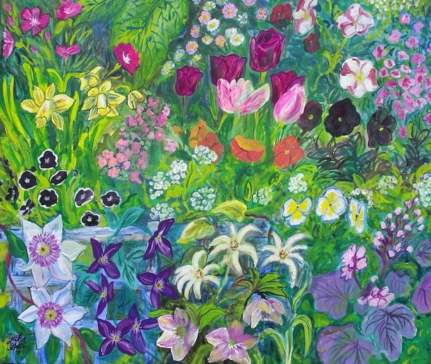Bottom: Flowers in the garden, acrylic on canvas, 2015