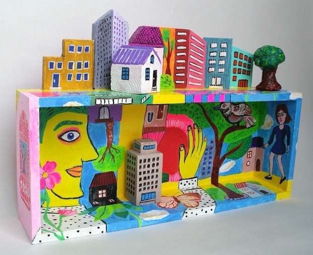 Middle: a Morning in a Town, acrylic on wood and polymer clay, 2015