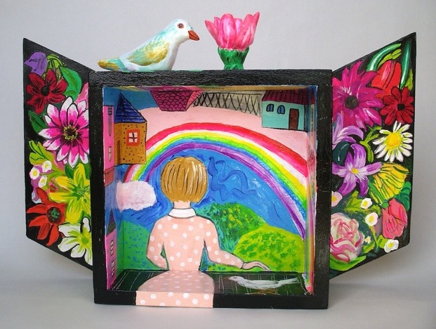 Image on Top: Happiness, acrylic on wood and polymer clay, 2015