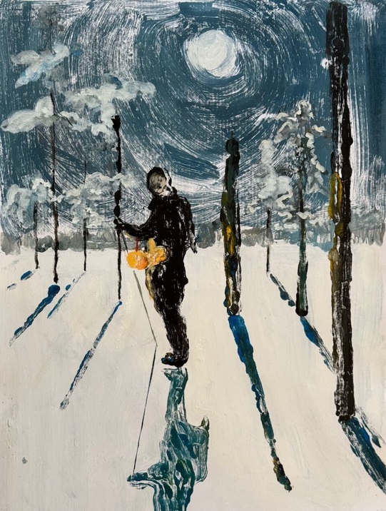 Below: Long Way Home, 49.5x38cm, monotype and oil on paper, 2024