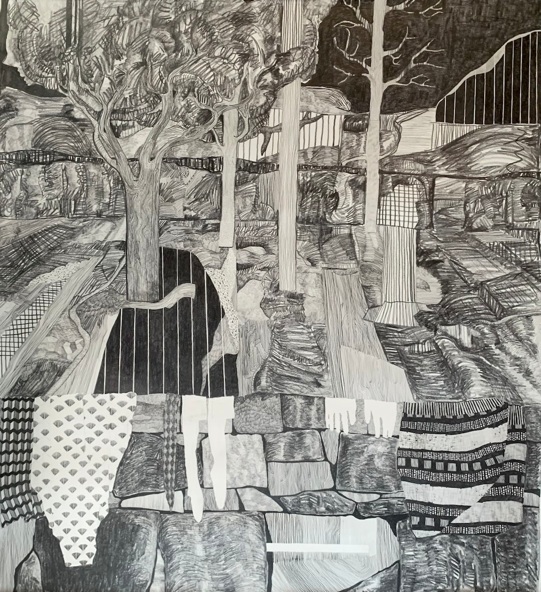 My most recent work with graphite features fragile, decomposable, and monotone art. Like a shodō artist swings enormous brush over paper, I draw calculated lines onto my paper where there are no redo’s. This way, the art feels naked and exposed.