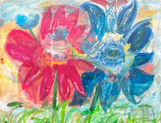 Below: 花とわたし Flowers and me, 夏の夕日の中 In the summer sunset, 2024