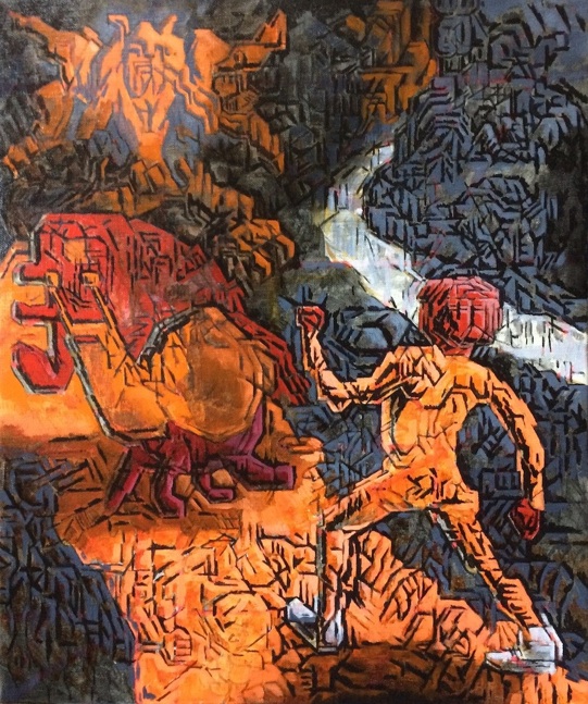 Image on TOP: Reset: Confront each other, oil on canvas, 2025