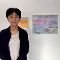 When rain falls in the season of fresh verdure, I am aware that the summer which sheds the torrent of light is approaching, and I feel uplifted. In my neighbors’ yards, Sunflowers and gladiolus bloom alone, yet they face the azure sky. It seems like the sunflowers are looking at me, so that makes me smile. When morning glories and roses came into my sight, I almost missed them when I hurried by, and I looked back at those days with nostalgia. While having a glass of ginger ale filled with lemons, and enjoying the cool air in a coffee shop in the evening, I feel refreshed. The seasons come and go, and small everyday occurrences weave my times and colors on canvas. Eternal memories of moments move freely in time and space in my heart, and live like an impressive landscape. The theme of this exhibition is Summer Symphony, I am expressing abstract art through the harmony of summer colors.