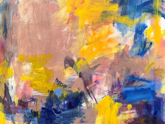 Recently she has been focusing on abstract expression by applying thin layers of acrylic paint, staining and brush strokes, and also adding the changes in acrylic paint by using other mediums/techniques.