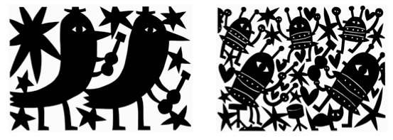 この20年間、アートにおいて僕の一番の焦点は、ペーパーカッティング(切り絵)である。僕のペーパーカッティングは、ハサミとアートナイフを使って切っている。作品にポジティブでうれしそうな感じがあるよう心がけているんだ。楽しくいこうよ!