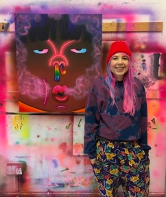 本展覧会では、彼女が、最近取り組んでいるシリーズ(iPadに描いた絵をアクリル絵の具、エアブラシを用いてキャンバスに描き直して制作)から新作のペインティング作品、及び、今展での発表が初めてとなる3Dペインティング(Wall sculpture)を紹介いたします。