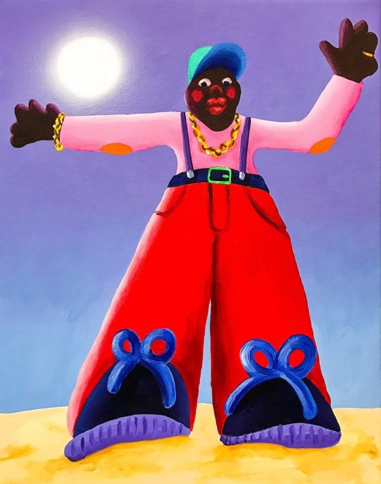 この展覧会での作品は、バケーション・スピリット、自由な時間、楽しい時間にやりたいこと、好きなことに思いを巡らし制作したペインティングとスカルプチャーになります。テニスプレーヤーや、サーファー、スポーティな体操家に、やりたいことをやってる人といった人物が登場します。