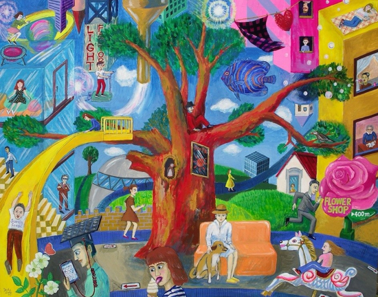 トップ:「希望の樹」、キャンバスにアクリル、91x72.7cm、2021年