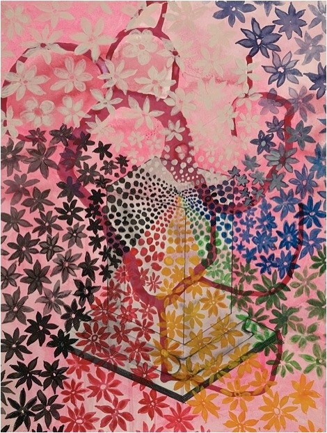 この一連の作品は2020年初め、感染予防のための自宅待機の間に制作した。紙の作品は狭い空間での監禁状態で暮らす私的な時間での現在の変化を扱うアブストラクト・セルフポートレートをつくる試みである。自画像のビジュアルの強さ、親密な関係、親しみのある対象、ニュースフィード、知覚の喪失、変化、不確実さ、脆弱性や楽観主義/悲観主義、その一方で、新発見に期待を寄せている。ここ20年にわたって、私のスタジオ制作はさまざまな形式の紙を用いることである。自身のむき出しの感情、矛盾や瞬時的ニュースフィードを表現する最高の過程は幾何学的形態、コントロールできる、できないドリップはもちろん、攻撃的なマークによる色や形の多重構造を手段としている。その結果、悲観主義、攻撃的な感情はゆっくり消え、私は徐々に反復性のある心の瞑想状態に達する。