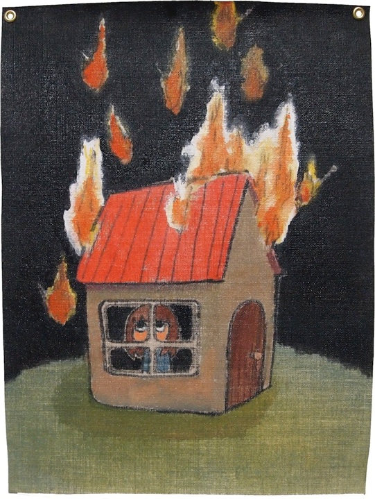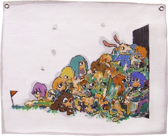 「火の粉」、2022年、アクリル、マーカー、キャンパス、ハトメ