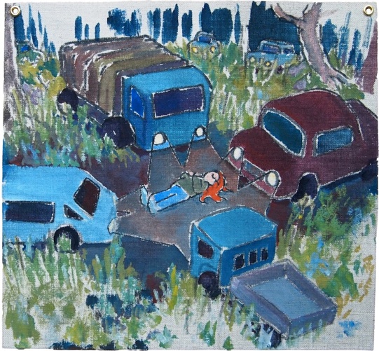 「野生の車2」、 2022年、アクリル、マーカー、キャンパス、ハトメ