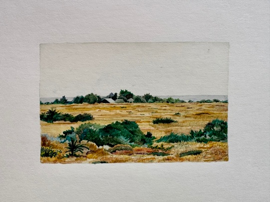 下:「flat land near sea」、「two women by dovecote」、紙に水彩、2026年