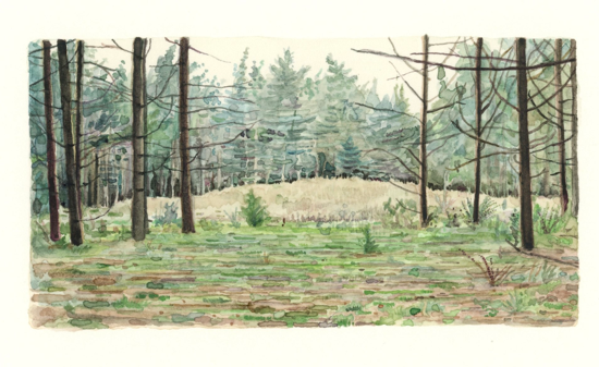 祖父はいつもカメラを持ち歩き、祖母や友人たちの写真をたくさん撮っていた。加えて、木々、鉄道路線、鳩小屋や野原はさらにたくさん撮影していた。これらのイメージを作品の出発点として使おうと思う。一部の作品は、これらのイメージにインスピレーションを得た細かい描写のペインティング、そこからさらに発想を広げていく。
