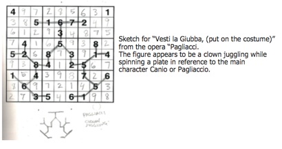 Opus 9 is a selection of compelling mixed-media artworks contingent on Paddy Shaw’s experience in the world of performing arts. While many artists have instanced the theatre in their works, Shaw takes the subject in a new direction by using Sudoku clues to create bold cryptograms that relate directly to a specific opera, musical, or play. “I noticed that Sudoku was a popular exercise for performers and technicians during lengthy down-times backstage,” Shaw quotes, “and after I picked it up, I began to see pictures or rune-like symbols in the clues. I had the notion that these relatively simple symbols could serve as ideograms repesentative of select stage works.”