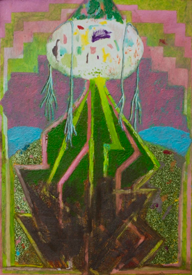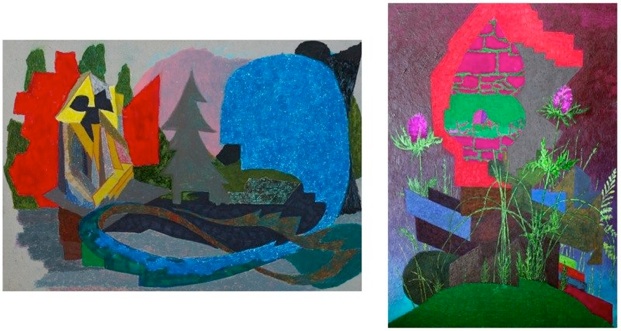 I like to play with contradictions with the aim of creating complimentary dissonances within aesthetic systems. Possible intersections of graphic art and “pure” abstract art, abject impressionism and traditional decoration, depictions of Jurassic flora and futurist architectonics etc. all must be resolved within a certain zone. In most cases direct external references are not used and images are developed autonomously and intuitively. These may be visions of a hazy tropical scene where it is perhaps unclear if the setting is densely serene or quietly menacing. Such dramatic uncertainties are preferred over a crystalline clarity or an excessive ambiguity.
