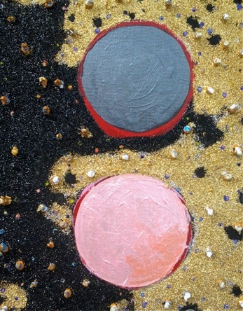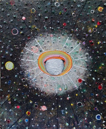 The subject of these most recent paintings which were made especially for this show, is an actual or imagined vision of “outer space”. The paintings use reflective materials and feature 3 dimensional paint "protrusions”.