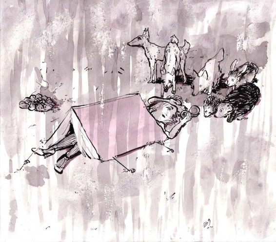 Bottom: “Camping” Ink on paper
