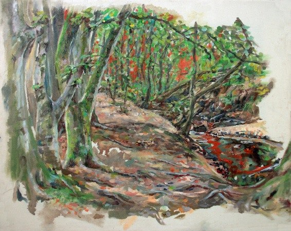 Claudia Ahlering explores the possibilities of landscapes and nature paintings in these works. Inspiration came from the works of the romanticism of the 18th and 19th century, and she pursues what modern painting can do.