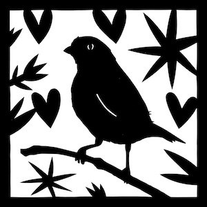 The cuttings for this exhibition are all of birds. I live in the country and am lucky to have many types of birds close to my home. The cuttings are all in black and white. Please use your imagination to see the beautiful colors of the birds.
