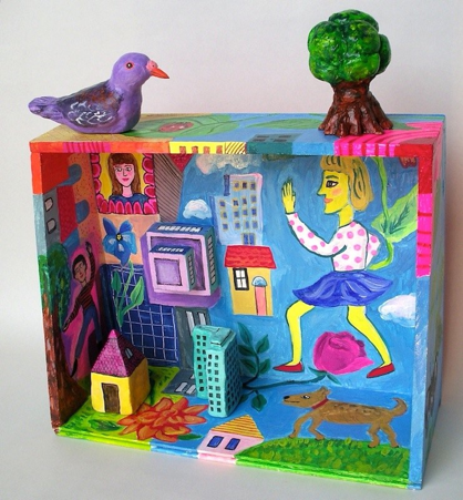 Image on Top: Happiness, acrylic on wood and polymer clay, 2015