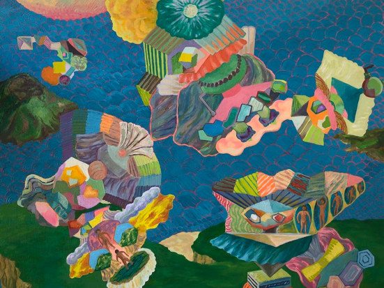 Image on TOP: Hearts leaping for joy and dancing above the sea, Oil on canvas, 72.7x91cm, 2020