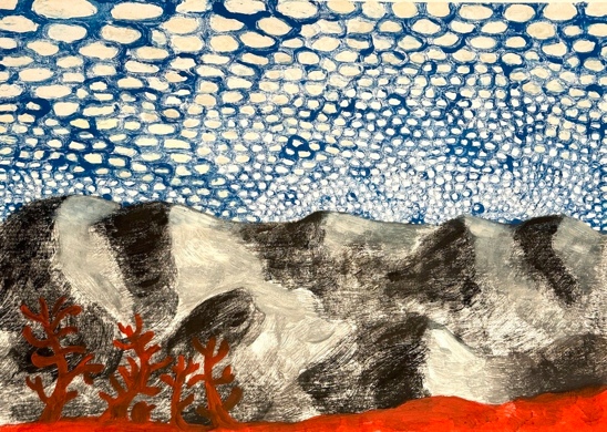 Below: Long Way Home, 49.5x38cm, monotype and oil on paper, 2024