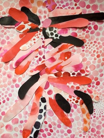 ボトム:「Fluid」 コラージュ、カラーインク、紙(手製)2015年