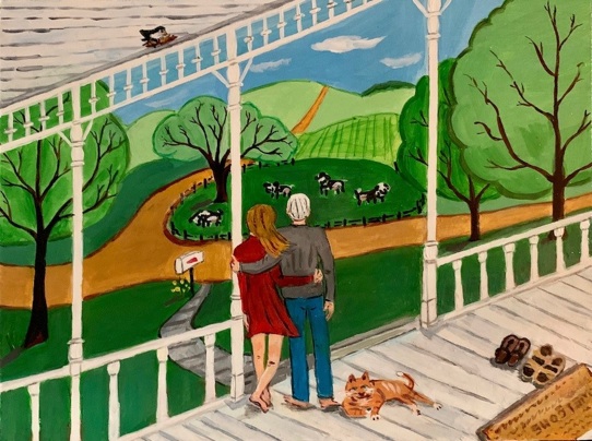 「The Porch」ボードにアクリル、 額付