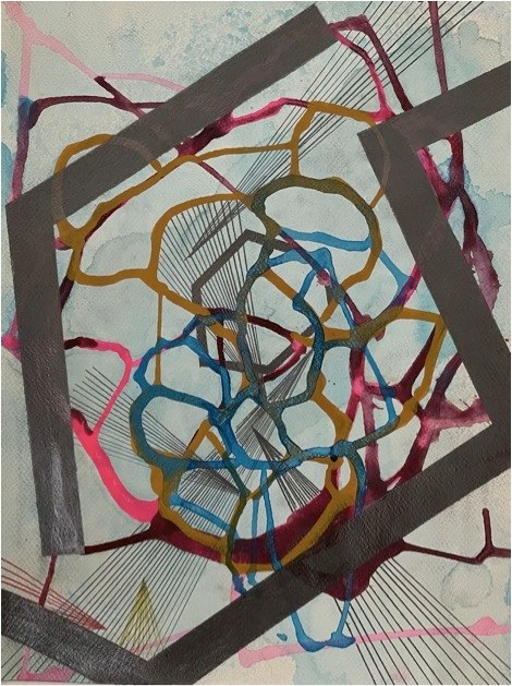 この一連の作品は2020年初め、感染予防のための自宅待機の間に制作した。紙の作品は狭い空間での監禁状態で暮らす私的な時間での現在の変化を扱うアブストラクト・セルフポートレートをつくる試みである。自画像のビジュアルの強さ、親密な関係、親しみのある対象、ニュースフィード、知覚の喪失、変化、不確実さ、脆弱性や楽観主義/悲観主義、その一方で、新発見に期待を寄せている。ここ20年にわたって、私のスタジオ制作はさまざまな形式の紙を用いることである。自身のむき出しの感情、矛盾や瞬時的ニュースフィードを表現する最高の過程は幾何学的形態、コントロールできる、できないドリップはもちろん、攻撃的なマークによる色や形の多重構造を手段としている。その結果、悲観主義、攻撃的な感情はゆっくり消え、私は徐々に反復性のある心の瞑想状態に達する。